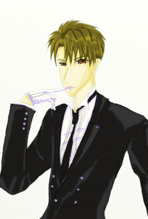可愛らしい主人を見ていたら魔が差してしまった。白い手袋を外すと、彼の櫻色の唇を指でなぞる。柔らかな感触が、指先に伝わる。
